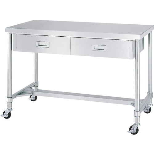 シンコー ステンレス(SUS304)作業台片面引出付H枠キャスター付 φ100ナイロン車 900×970×800 WDHNC9075N100 1台