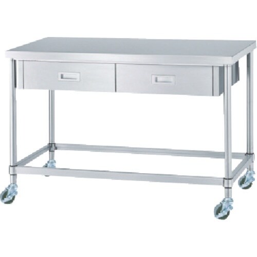 シンコー ステンレス(SUS430)作業台片面引出付四方枠キャスター付 φ75ウレタン車 1800×900×800 WDZC18090U75 1台