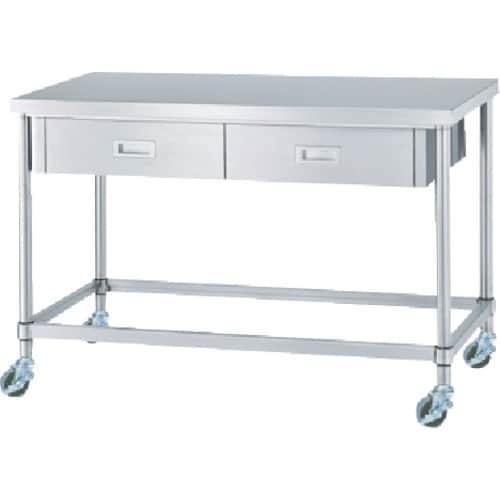 シンコー ステンレス(SUS304)作業台片面引出付四方枠キャスター付 φ75ウレタン車 600×450×800 WDZNC6045U75 1台