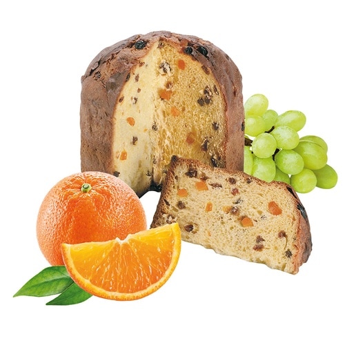 パネットンチーノクラシコミニョンは天然発酵の製品でパネトーネの典型的な形をしてます。生地にはサルタナレーズンと砂糖漬けのオレンジピールがたっぷり入っています。 |