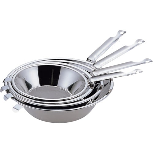 ステンレス製油こしです。キッチンポットにスッポリはまり安定感のいい油こしです。 |