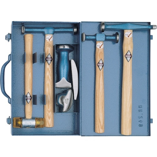 自動車の板金修理用工具7個が工具箱に入っています。自動車のボディのヘコミの修理に使用します。 |