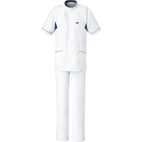 脇部分のネイビー配色で見た目がすっきりの男性用ケーシーは、機能性にもこだわった白衣ウェアです。脇下のムレを軽減するメッシュ仕様、ベンチレーション機能付きです。