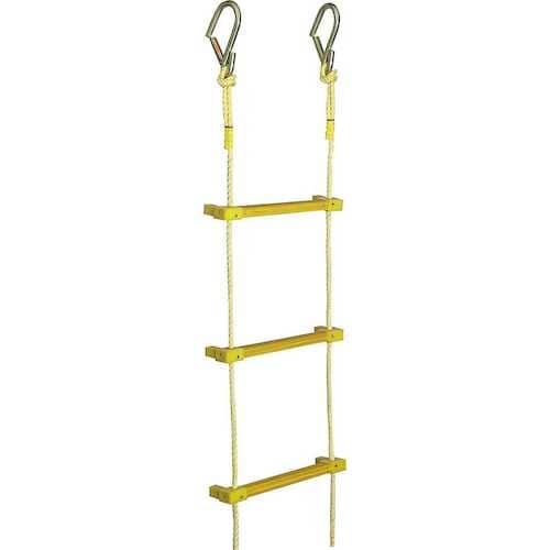 備え有れば憂いなしです。火災・豪雨・冠水時などまさかの時の命綱。非常用縄はしご。足をかけやすい木製ステップの縄ばしごです。フックは60ミリのパイプがぴったり入り、はずれ止めの付いたS型の小カギです。 |