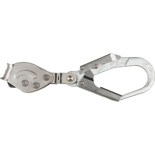 二重の外れ止め付きで安全です。平行溝の為、S撚り、Z撚りのいずれにも利用可能です。ステンレス鋼板の一体プレス加工品で、安心・軽量です。φ16mm親綱ロープの緊張に。 |