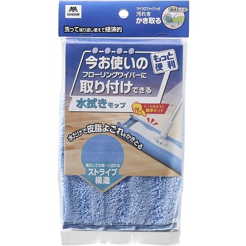 今お使いのフローリングワイパーに取り付けできる、水拭きモップ。 マイクロファイバーで汚れをかき取ります。 |