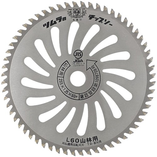 厳選した材料を使用し、国内工場で製造した純日本製草刈チップソーです。本職用精密本目立の60枚刃で、雑木や竹、笹の刈払に最適です。深い目底で切り掃けが良く、切り詰まりにくいです。山林・下刈・草刈用。 |