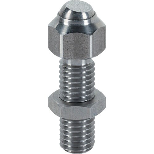 ボールの反転防止付初期位置復帰機能付高さ調整タイプの揺動パッドです。ボールが取付面と平行な初期位置に自ら戻り、ワークをセットするときにボールが斜めの姿勢でかじるようなことがありません。 |