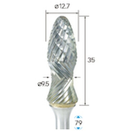 形状:ひょうたん | 刃径(mm):12.7 | 刃長(mm):35 | 軸径(mm):6 | 全長(mm):79 | 最高使用回転数(rpm):15…