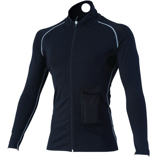 ペルチェ素子を首と脇に配置して、効率的に身体を冷やすコンプレッションです。ナイロンの冷感性でさらにヒンヤリした着心地です。気温が高い日の作業に。