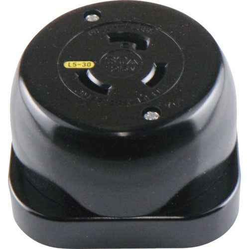 NEMA規格L5−30互換品です。安定性抜群のベースです。電線引出し口はノックアウト式です。電線接続方式は引締式です。 |