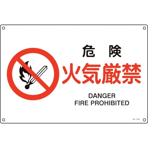 日本緑十字社 緑十字 JIS規格安全標識 危険・火気厳禁 JA−124L 300×450mm エンビ 391124 1枚 A07F-8052