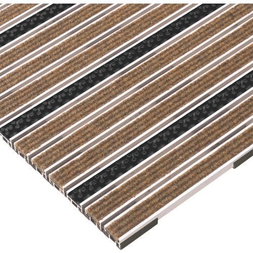 フレームの耐久性に優れ、軽量なアルミ材を使用した巻き取り可能な金属マットです。繊維部とブラシ部が組み合わされた機能性に優れたタイプです。屋内用玄関マットに。 |