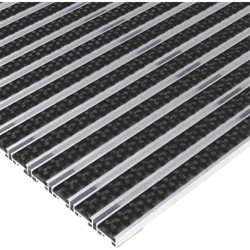 フレームの耐久性に優れ、軽量なアルミ材を使用した巻き取り可能な金属マットです。ブラシ部分で靴の裏の汚れを強力に取り除きます。屋外用玄関マットに。 |