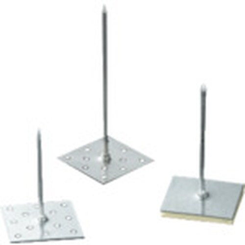 グラスウールやロックウールなど繊維系断熱材の取付け用鋲です。保温・保冷・断熱工事接着金具工法用です。 |