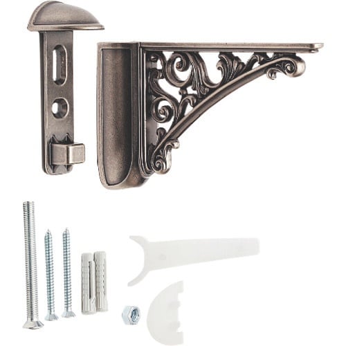 バロック調の装飾でインテリアを華やかに演出します。固定金具の位置を変えることで、板厚6ー40mmのガラスや木板を固定できます。受注対応でカッパー仕上もご用意できます。 |