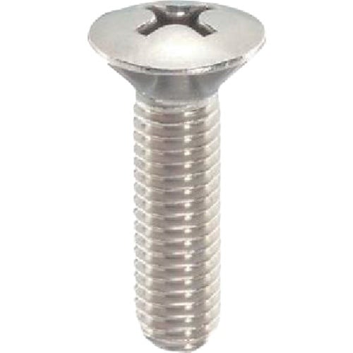十字穴付きの皿頭小ねじです。部材に頭部を出さない為の座ぐり加工が必要です。ステンレス鋼なので耐食性、耐熱性に優れています。ボルトに比べ小さな部材の一般的な締結に。 |