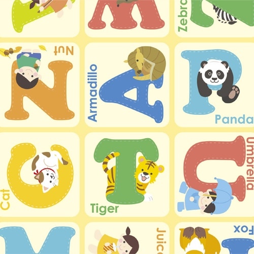 ポップなアニマル柄の包装紙です。動物の名前を英語で覚えられるデザイン。