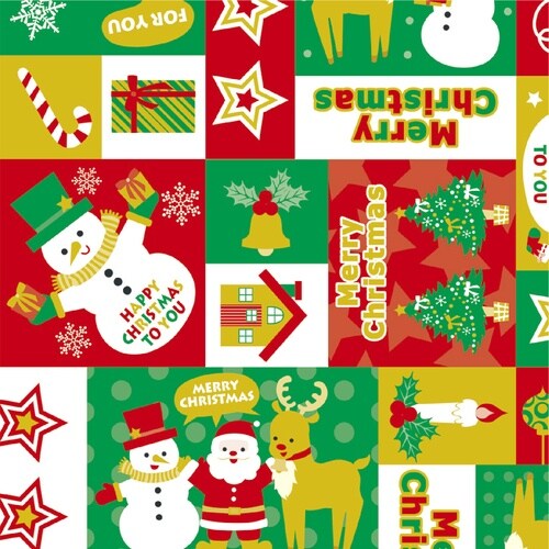 ファンシーなクリスマス柄の赤色の包装紙です。 |