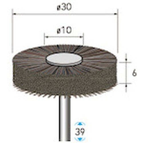 毛材:馬毛 | 外径(mm):30 | 幅(mm):6 | 軸径(mm):3 | 全長(mm):39 | 最高使用回転数(rpm):10000 | 形…