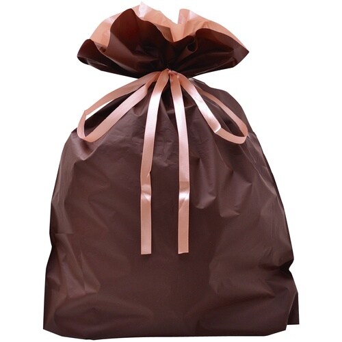 中身を入れて、両サイドのリボンを引っ張るだけで簡単に包める袋です。