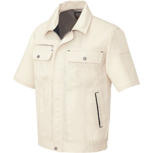 アイトス 半袖ブルゾン(男女兼用) ベージュ×ブラ