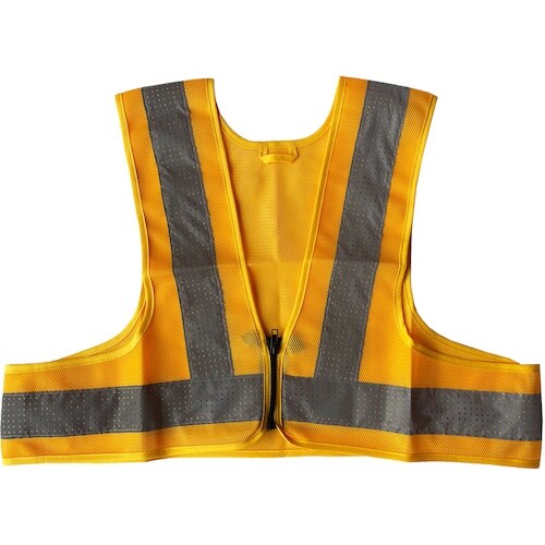 反射材に穴が空いていて通気性に優れています。抜群の軽量性、速乾性、耐久性に優れています。前合せ部分がファスナーなので着脱がスムーズです。 |