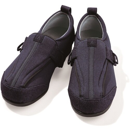 幅広です。開閉しやすく履かせやすいです。トウボックスが高く、つま先に余裕のある構造です。つま先まで大きく開きます。仕事履きに。職場履きに。甲高幅広の方に介護施設などでのご利用に。 |