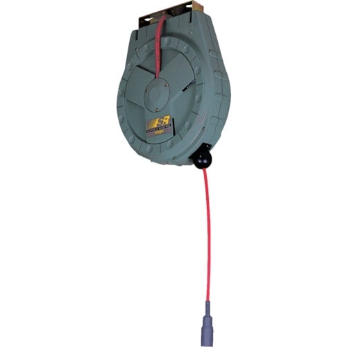 10m自動巻取りのホースリールです。ラチェットの爪が細かく任意の位置でストッパーが利き、どこでもストッパーをはずすことができます。耐スパッターホース10mを収納しています。ケースカラーはグレーです。 |