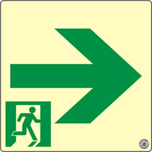 アルファフラッシュ 高輝度蓄光式誘導標識 ステッカータイプ ASN951 150mm×150mm 厚さ0.5mm ASN951 1枚