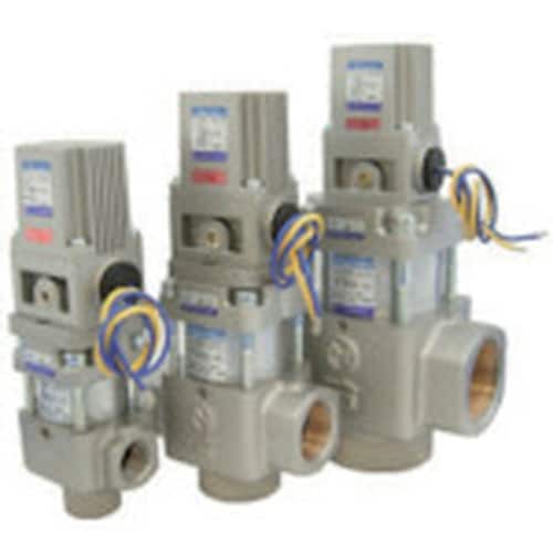 ピストン作動によりバルブを開閉しますので、低粘度の流体を確実ON−OFFします。電磁弁付きです。流体をON−OFFさせるバルブです。 |