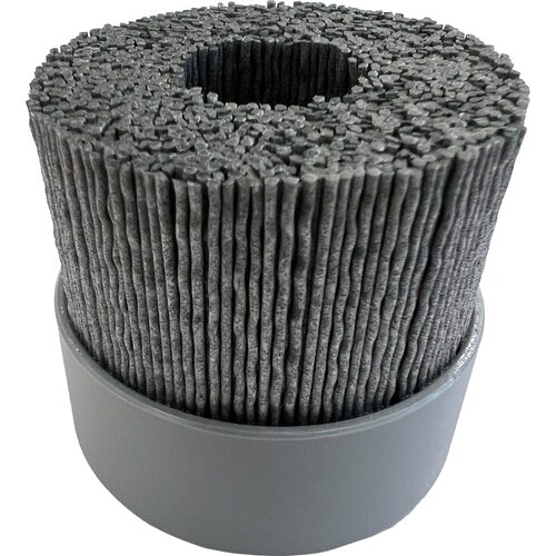 独自のブラシ線材と植毛方法により、削り込みしすぎず、安定した加工が可能です。ブラシを高密度で植毛しており、単一平面の複雑な形状の研磨面および研削面のバリ取りが可能です。 |