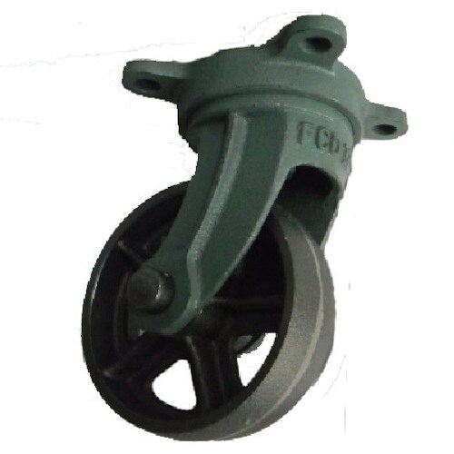 ベアリングなしタイプの鋳鉄車輪付キャスターです。耐荷重性、耐熱性、耐寒性に優れています。運搬台車、機械の足回りなどに。