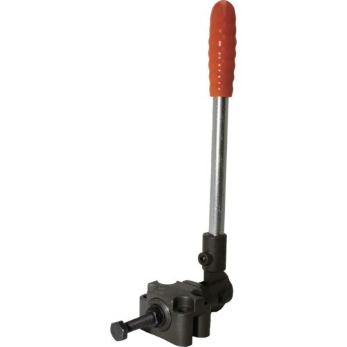 構成部品を全て表面焼入れ処理することで高い耐久性を実現しています。2段カムの採用により、クランプの速度を最適にしています。高さ方向にクリアランスが無い場合など、ハンドルを倒して使うことも可能です。 |