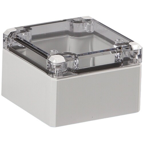 保護等級IP65の防水・防塵ポリカーボネートボックスです。軽量で耐衝撃性に優れています。トップカバー内側にも取付ボスが付いていますので部品などの取付けにご利用下さい。