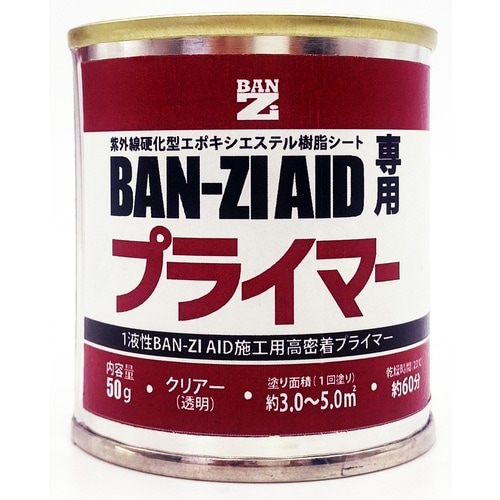 紫外線硬化型補修シートBAN−ZI AIDの密着性を高める専用の施工用高密着プライマーです。従来の2液性から1液性に変更となり、作業性が向上します。 |