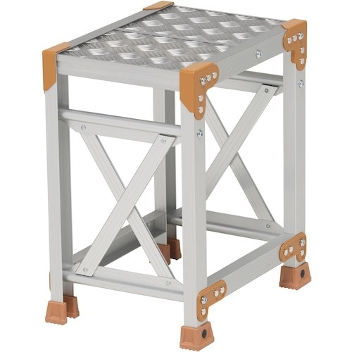 豊富なラインナップを揃え現場ニーズに応える作業用踏台です。表面処理が高級感のあるアルマイト仕上です。(支柱のみ)縞板タイプによりどの方向に対しても滑り止め効果を発揮します。 |