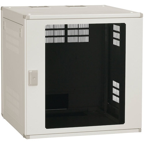 ドアはピボットヒンジを採用し、ワンタッチで着脱が可能です。左開きへの変更も可能です。側板、背面板はスライドラッチにより、着脱が容易です。背面と底面にブラインドシート付配線孔を装備しています。 |