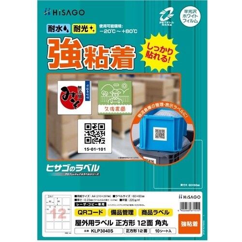 HISAGO ラベル 屋外用ラベル A4 12面 KLP3040S 1冊(10枚)