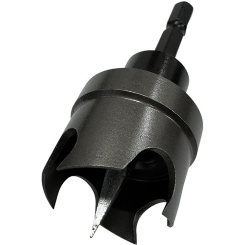 樹脂プルボックスやビニールパイプの貫通の瞬間、切片が落下します。コンパネ12mmを瞬時に穴あけ可能です。切片を簡単に排出できます。切断面の仕上がりが綺麗です。