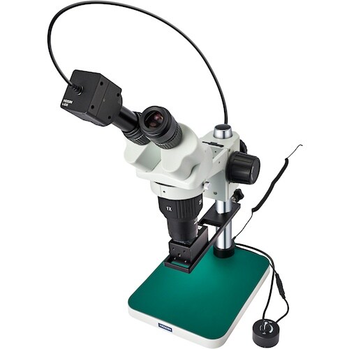 お手頃・対物レンズ切換式・カメラで確認・保存1×/2×切換式対物レンズの価格を抑えた実体顕微鏡と、堅牢で取付ネジを多数備えた500万画素USBカメラのセットです。