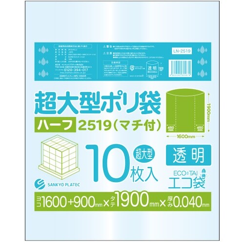 サンキョウプラテック サンキョウプラ 超大型ポリ袋(マチ付) 2500x1900 10枚 0.040厚 透明 LN2519 1冊(10枚) A07K-2857