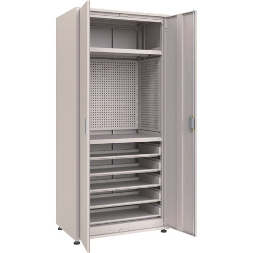 TRUSCO M3中量棚 背板・側板・扉付 W900XD595XH2100 中棚2段スライド棚5段 パンチングパネル付 M3U7364IPP3SL35SGR 1台