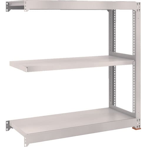 ボルトを1本も使用していないボルトレス構造で、分解・組み立て作業が簡単で、作業時間を大幅に短縮できます。棚の段変更が、25mmピッチで、自由に調整、変更ができます。 |