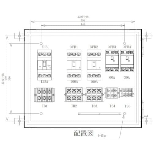 セフティー 仮設動力分電盤 MP125−N4 主幹125A 4回路(100A×2)(60A×1)(30A×1) MP125N4 1個
