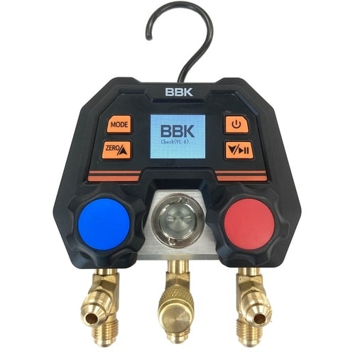 18種類の冷媒を1台で作業できるデジタルマニホールドです見やすいカラースクリーンタイプです。冷媒表示モードと真空引きモードの画面切替が可能です。 |