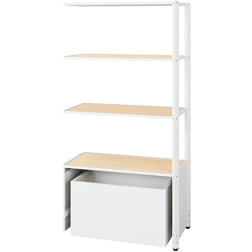 NAIKI シェルフラック(下段ボックス メレム MU型/天板:シルクウッド 本体:サテンホワイト/W925×H1813 MU0918RUSSWS 1台 A07K-7937