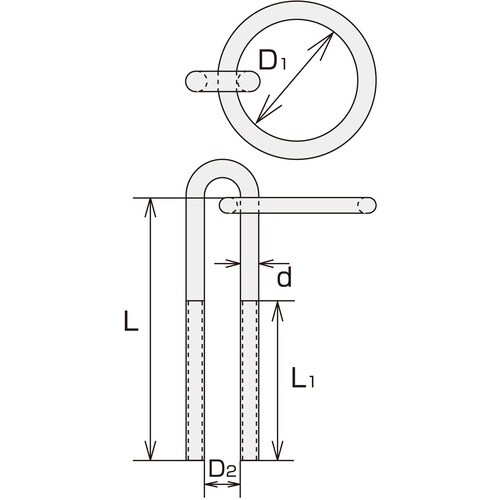 使用荷重(kN):14.7 | L(mm):300 | L1(mm):200 | 呼び径d(mm):19 | リング内径D1(mm):150 | D2…