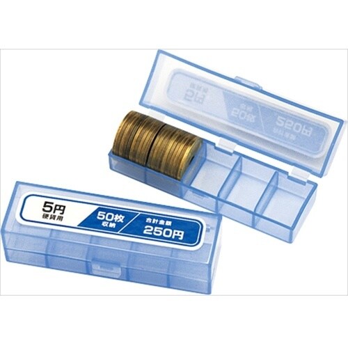 1ケースに50枚収納可能。また、10枚ごとに仕切りがついており硬貨の整理が簡単にできます。収納の際に便利な角形を採用しました。