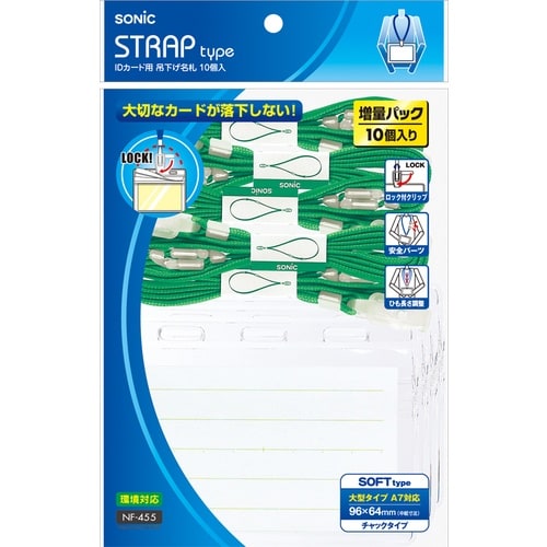 ソニック ソニック IDカード用 吊下げ名札 10個入 緑 NF455G 1袋(10個) A07K-9969